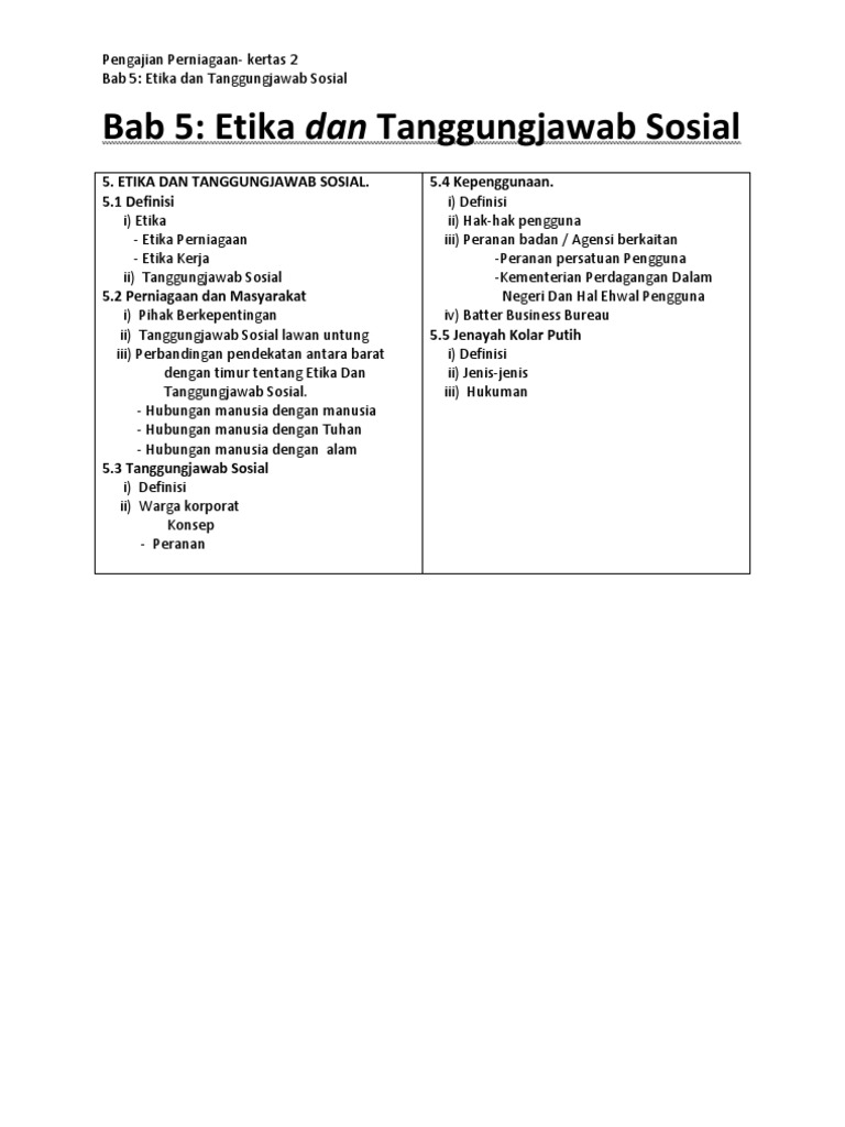 Pengajian Perniagaan Bab 5 Etika Dan Tanggungjawab Sosial Kertas 2 Pdf