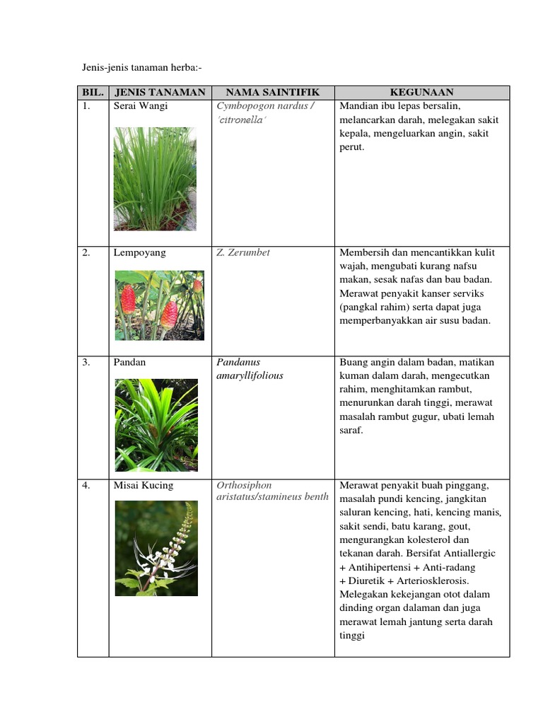 jenis tumbuhan herba dan nama saintifik