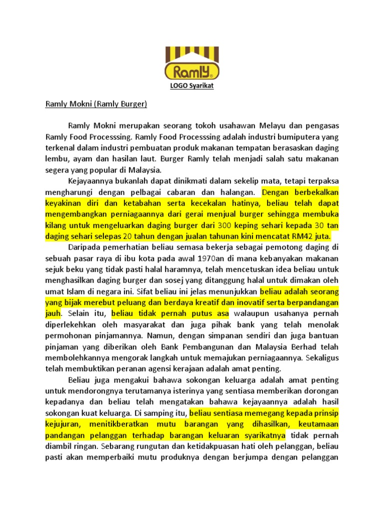 Pb Bisnes Individu Docx 1 0 Latar Belakang Syarikat Ramly Mokni Holding Berhad Perusahaan Burger Ramly Mokni Sdn Bhd Telah Didaftarkan Course Hero